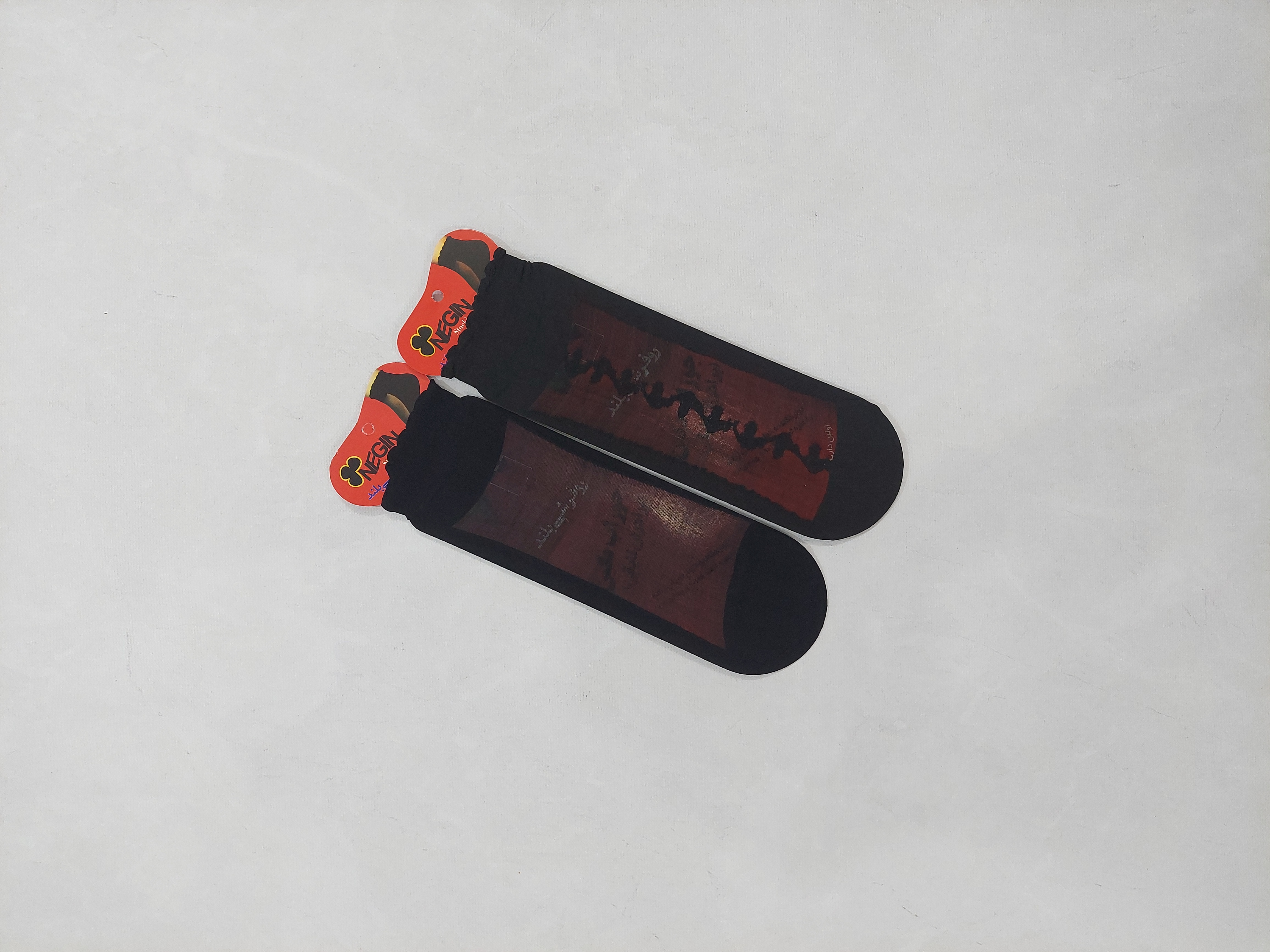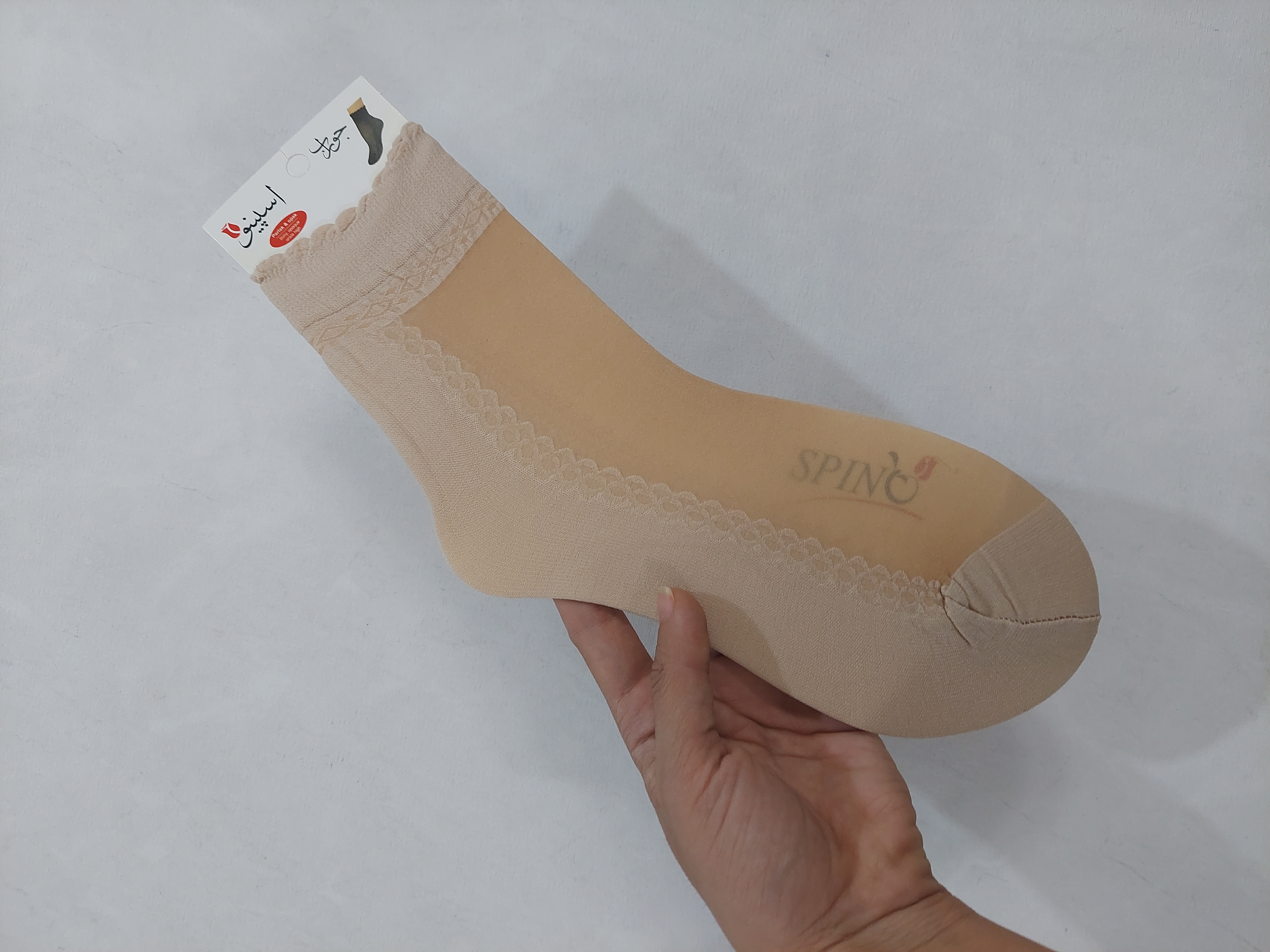 جوراب زنانه روفرشی در دو رنگ کرم و مشکی با طرح های خاص که جنس پارازین و تور داره .