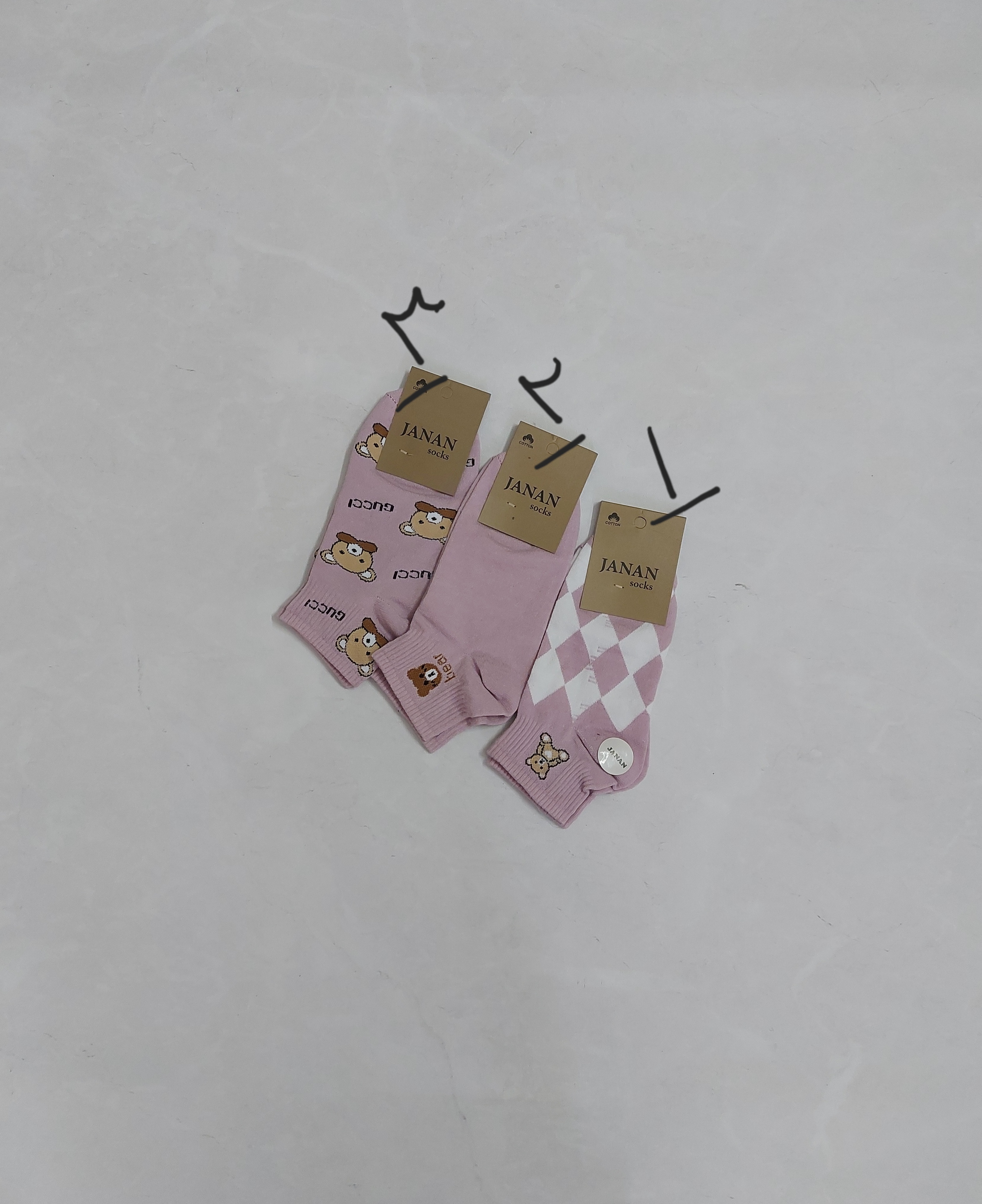جوراب زنانه مدل ساق کوتاه رنگ بنفش در 3 طرح خاص جنس نخی و با کیفیت مناسب استفاده روزمره