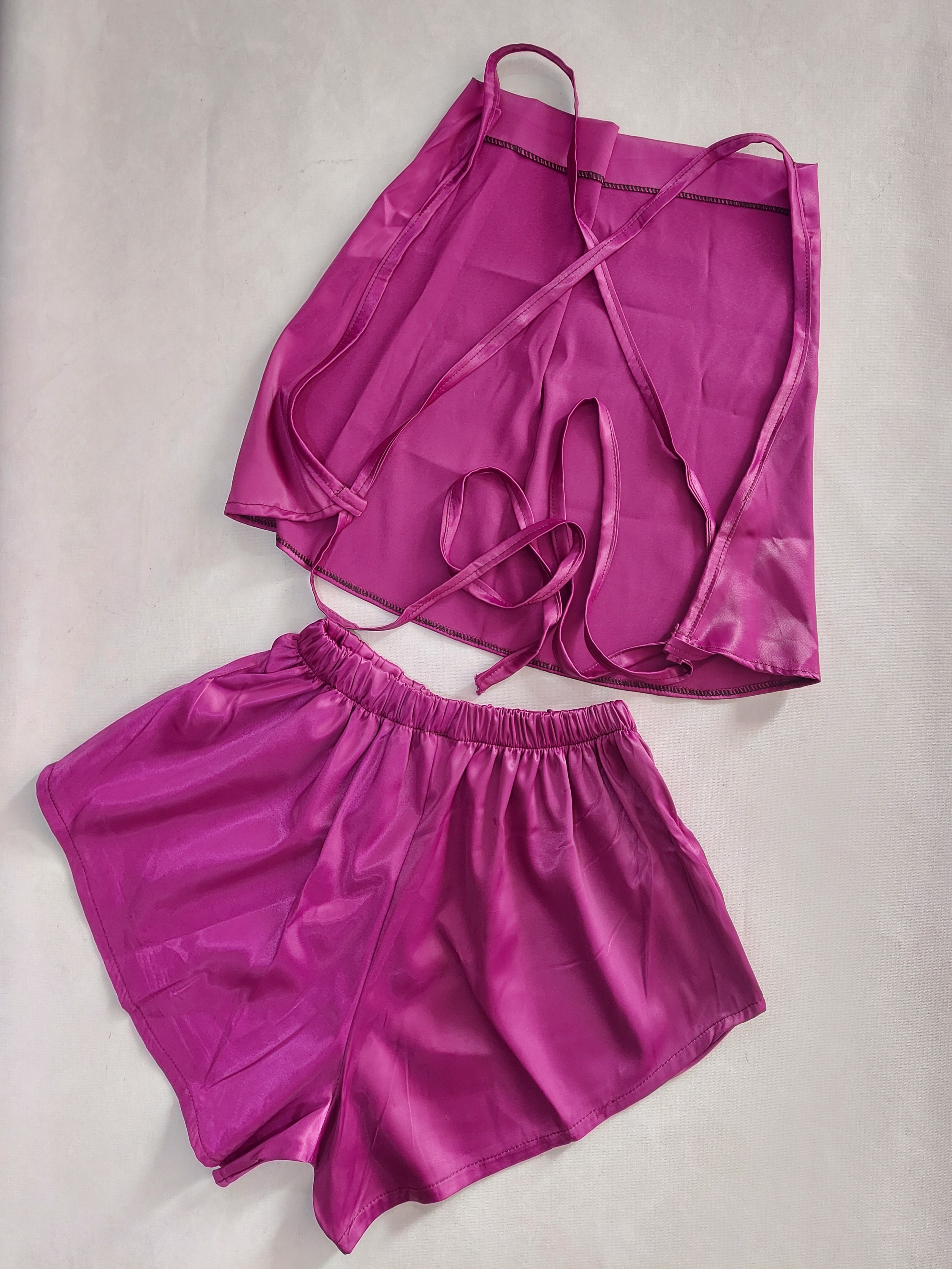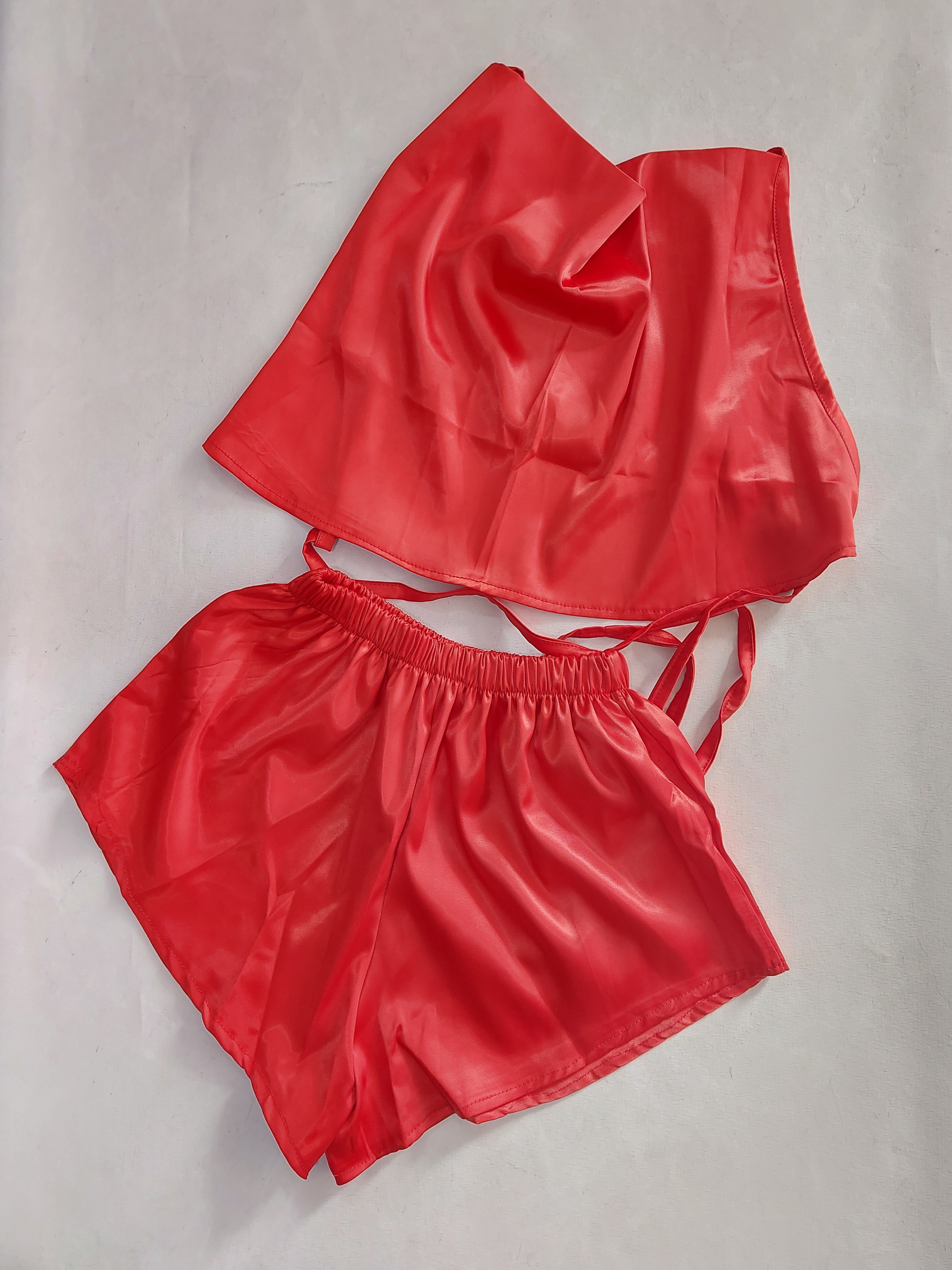 ست تاپ و شورتک زنانه مدل پشت بندی یقه شل از جنس ساتن بسیار با کیفیت و لطیف می باشد . سایزبندی این مدل فری سایز است( مناسب ۳۶ تا ۴۲)